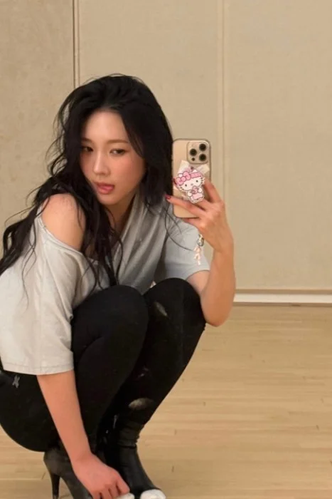 “Yeonjung, look at yourself!” you point out as you help her to her feet. The clack of her heels echoes throughout the dance studio, a sound that will likely haunt you for the next couple of nights. “You need to go home and shower. You stink.”