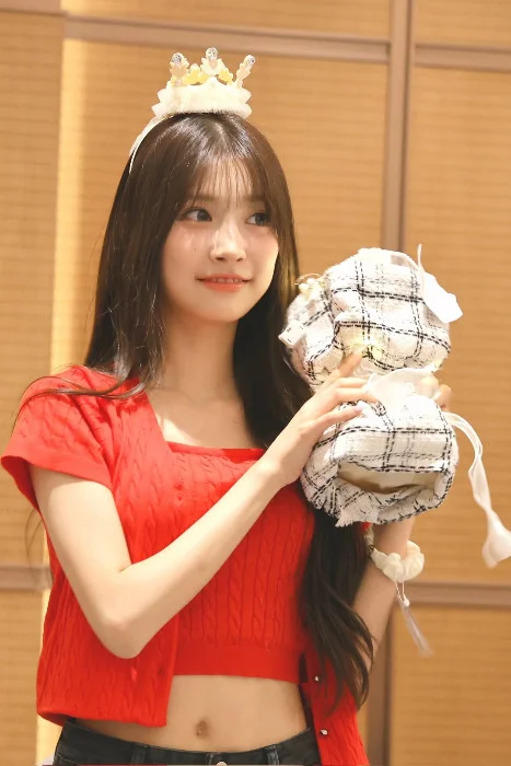 “Hey…” you hear a low voice coming from behind you, as you look back you see Kim Minseo, standing there with hands behind her back, her hair brown as it has always been as she wore a simple white dress, followed with a cute pair of white boots and to finish the look she had a cute pink small bag, you couldn’t help yourself but blush at her look.