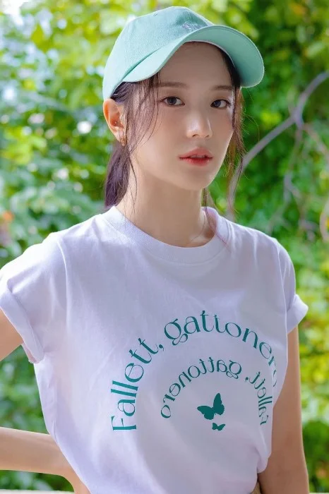 The voice is soft yet commanding, and you immediately straighten, turning to the counter. There she is—Gyuri, the radiant owner of Golden Brew. Her beauty is the kind that leaves people momentarily breathless. stood effortlessly graceful in her casual white t-shirt and mint-green cap, her gentle features framed by stray strands of hair and a gaze as warm as the morning sun