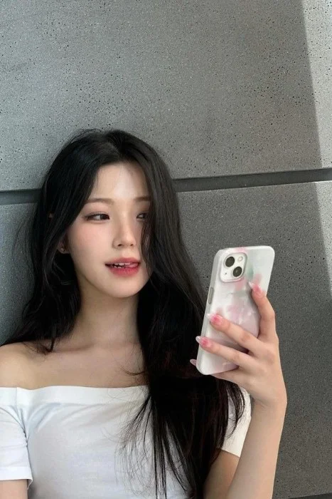 “Hi there,” she says, her voice smooth and casual, like she’s greeting an old friend. Her gaze locks onto yours, and her smile widens slightly. “You’re Junho, right?”