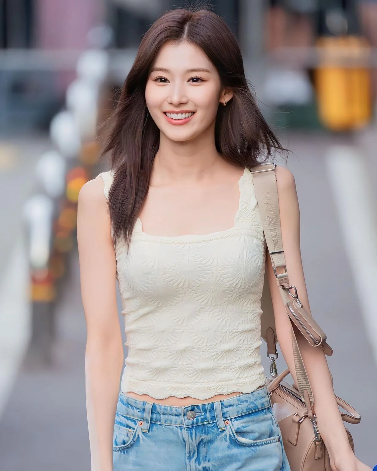 As you stood between Sana and Miyeon, the warmth of their bodies enveloped you like a soft blanket. Your heart raced, not just from desire, but from the disbelief that this moment was unfolding in front of you. It felt surreal, and you took a breath, trying to savor every detail—the scent of their skin, the way their eyes sparkled with mischief and excitement.